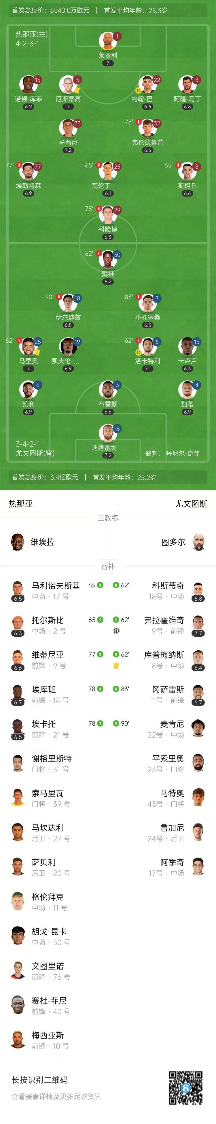第73分钟,尤文左侧角球开出,弗拉霍维奇小禁区前沿高高跃起头球破门,尤文图斯1-0热那亚。↓