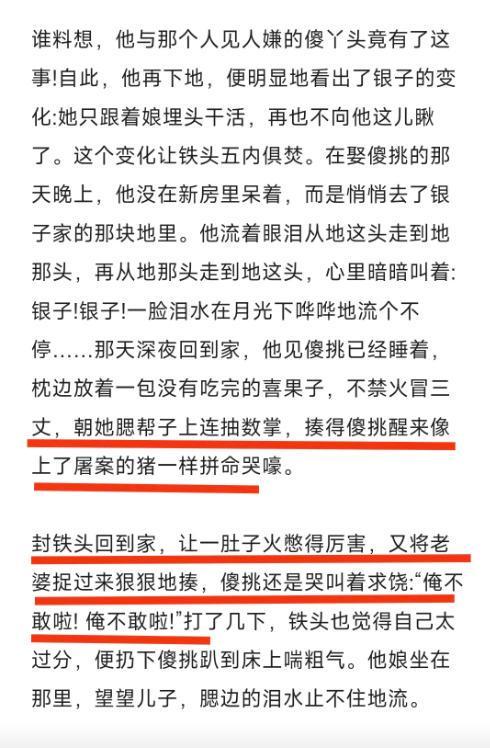 后来,他被迫娶了傻挑,但时不时便会家暴傻挑。