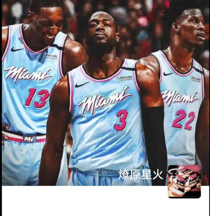 有一些巴特勒球迷对我有抱怨,不满我对巴特勒上赛季一些风波行为的批评,也不满我在斯波、巴特勒和哈斯勒姆发生冲突时“维护哈老狗”的行为。但实际上,我一直是认定“团队至上”理念的人,而我对于热火的一切热爱都起源于韦德(而哈队又是韦德最坚实的老友),并且,我的微信朋友圈封面从2019年的那次更新后,就从未更换过: