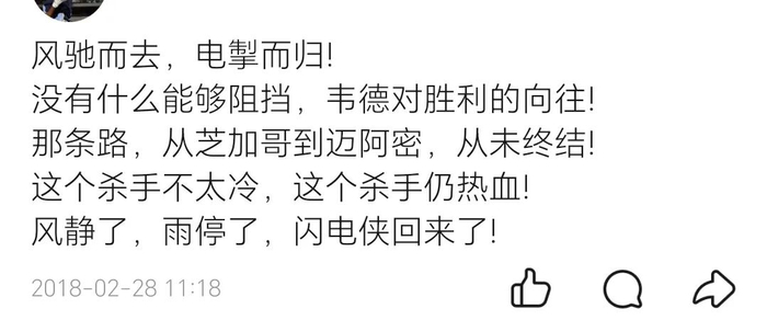 实际上,就算是对于韦德,我也没怎么以“韦大爷”相称呼,稍微亲昵一点的称呼可能就是“我韦”了:说白了,我觉得,我对球员的喜欢,是起源于篮球这项运动的“体育”本质的。