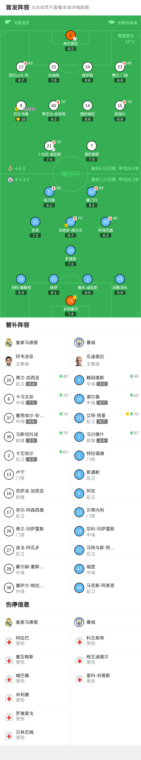 第20分钟,巴尔韦德盘过多纳鲁马之后小角度破门,皇马1-0曼城!